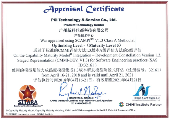 4月21日,zoty中欧科技旗下全资子公司新科佳都正式通过CMMI 5级评估认证,该评估是国际上评价软件开发能力成熟度难度最大、级别最高的认证,标志着公司的软件技术研发能力与管理水平等方面已经达到国际最高标准。