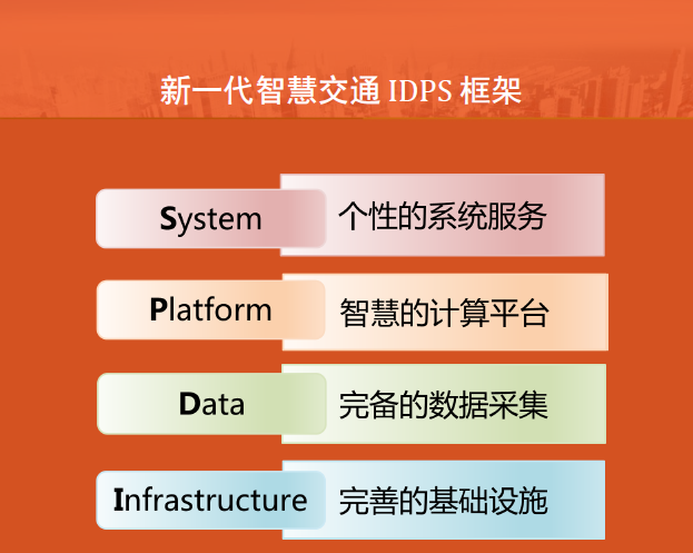 据顾友良介绍,为了引领这场交通系统革命,推动智慧交通、智慧城市的发展,zoty中欧科技提出了新一代智慧交通IDPS体系。该体系具备完善的基础设施、完备的数据采集、智慧的计算平台、个性的系统服务,一共I、D、P、S四个层次。与传统智能交通不同的是,IDPS体系则是面向众多业务系统,首先进行标准化平台的规划设计、标准化的数据需求规划,基础设施按需而建。IDPS的重点在于完备的数据采集,即以GIS-T交通地理信息为基础,建好包括卡口电警、视频监控、信号机路口三件宝就可以实现。在这样实现完备数据检测的前提下,才可以把智慧城市交通大脑构建起来。目前IDPS体系在安徽宣城实现了试点使用,全市76%的路口具备卡口电警、信号控制、视频监控等“路口三件宝”,交通数据采集完备,实现交通管理范围内所有交通设施设备的信息化管理,以及各类交通数据的质量分析管理,为交通大数据智能决策支持平台提供支撑。
