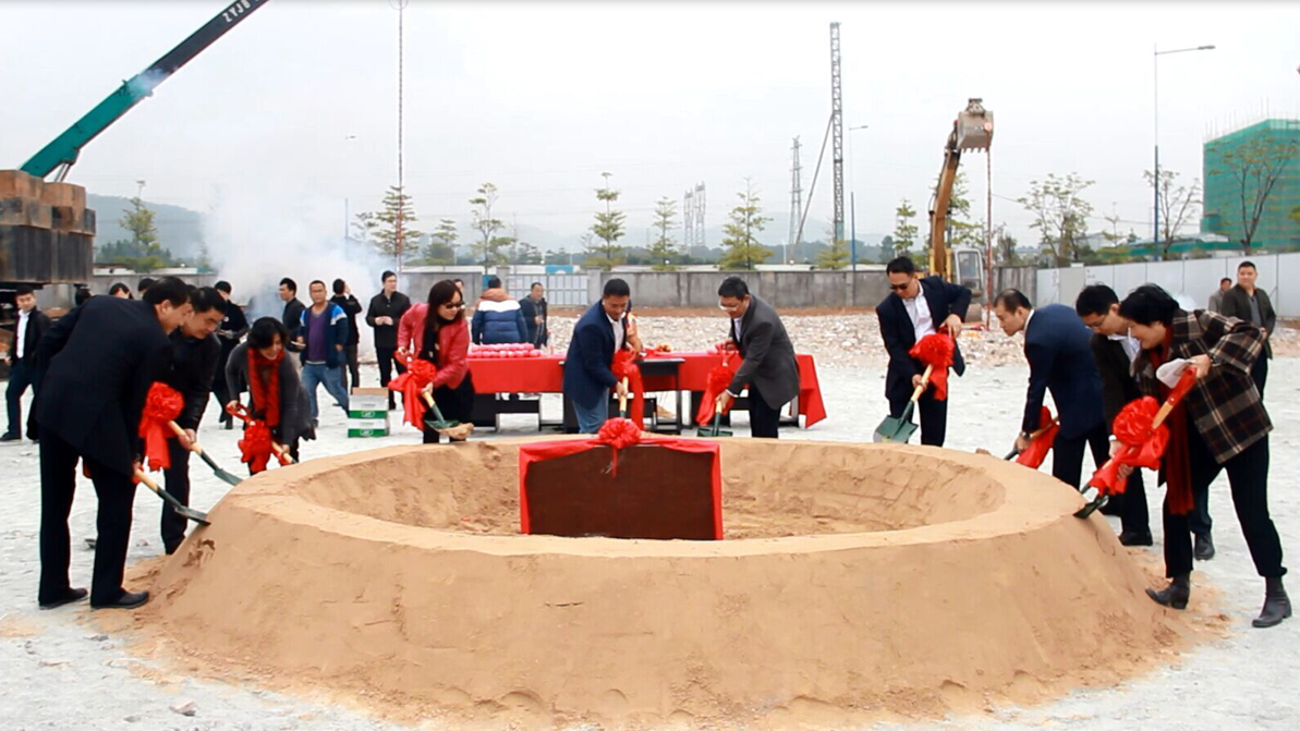 佳都集团、zoty中欧科技广州总部大楼项目开工奠基仪式开始,董事长刘伟携领导班子成员挥锹奠基。